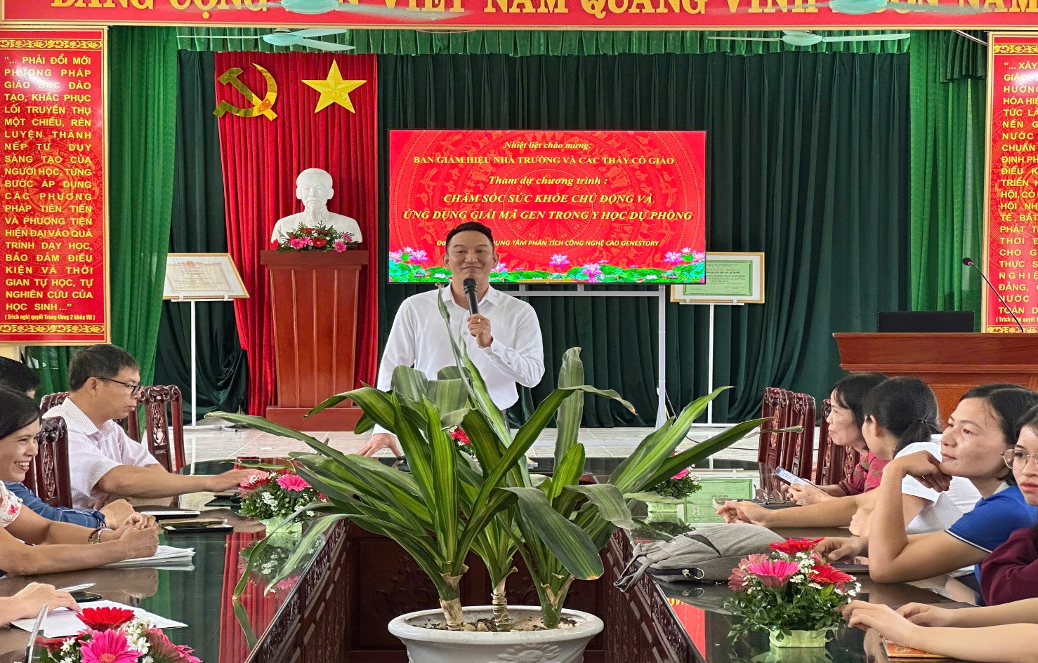 Hội giáo dục chăm sóc sức khỏe cộng đồng Việt Nam tư vấn chăm sóc sức khỏe chủ động và ứng dụng giải mã GEN trong y học dự phòng cho CBGVNV, tuyên truyền giáo dục giới tính, chăm sóc sức khỏe sinh sản vị thành niên, phòng chống bạo lực học đường cho học sinh trường THCS Ninh Cường.