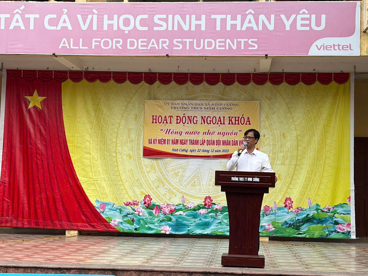 LIÊN ĐỘI TRƯỜNG THCS NINH CƯỜNG TỔ CHỨC SINH HOẠT DƯỚI CỜ VỚI CHỦ ĐIỂM: “UỐNG NƯỚC NHỚ NGUỒN” VÀ KỶ NIỆM 81 NĂM NGÀY THÀNH LẬP QUÂN ĐỘI NHÂN DÂN VIỆT NAM (22/12/1944 – 22/12/2025) VÀ 36 NĂM NGÀY QUỐC PHÒNG TOÀN DÂN (22/12/1989 – 22/12/2025)