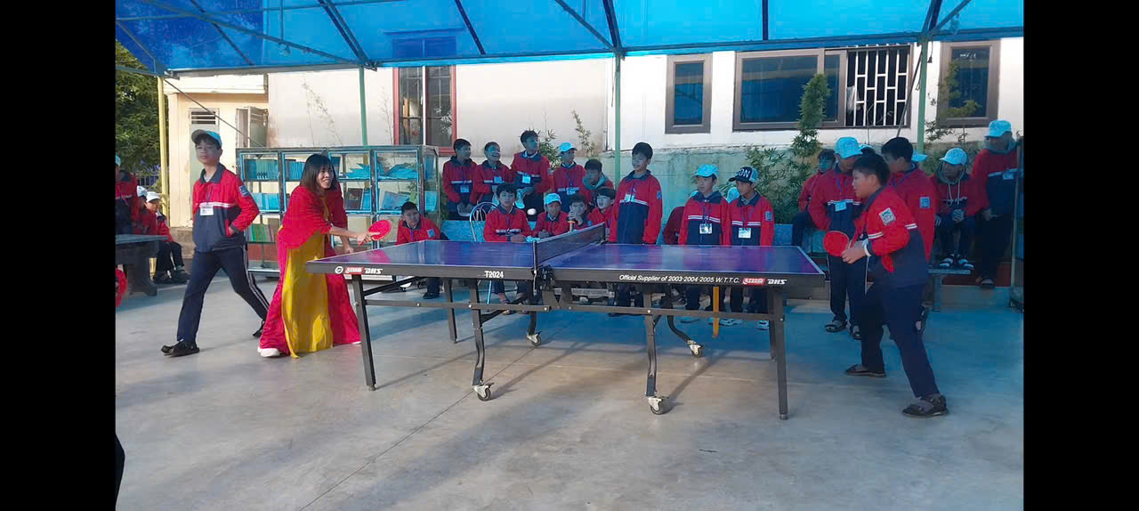 Hình ảnh thầy cô và học sinh thi đấu bóng bàn